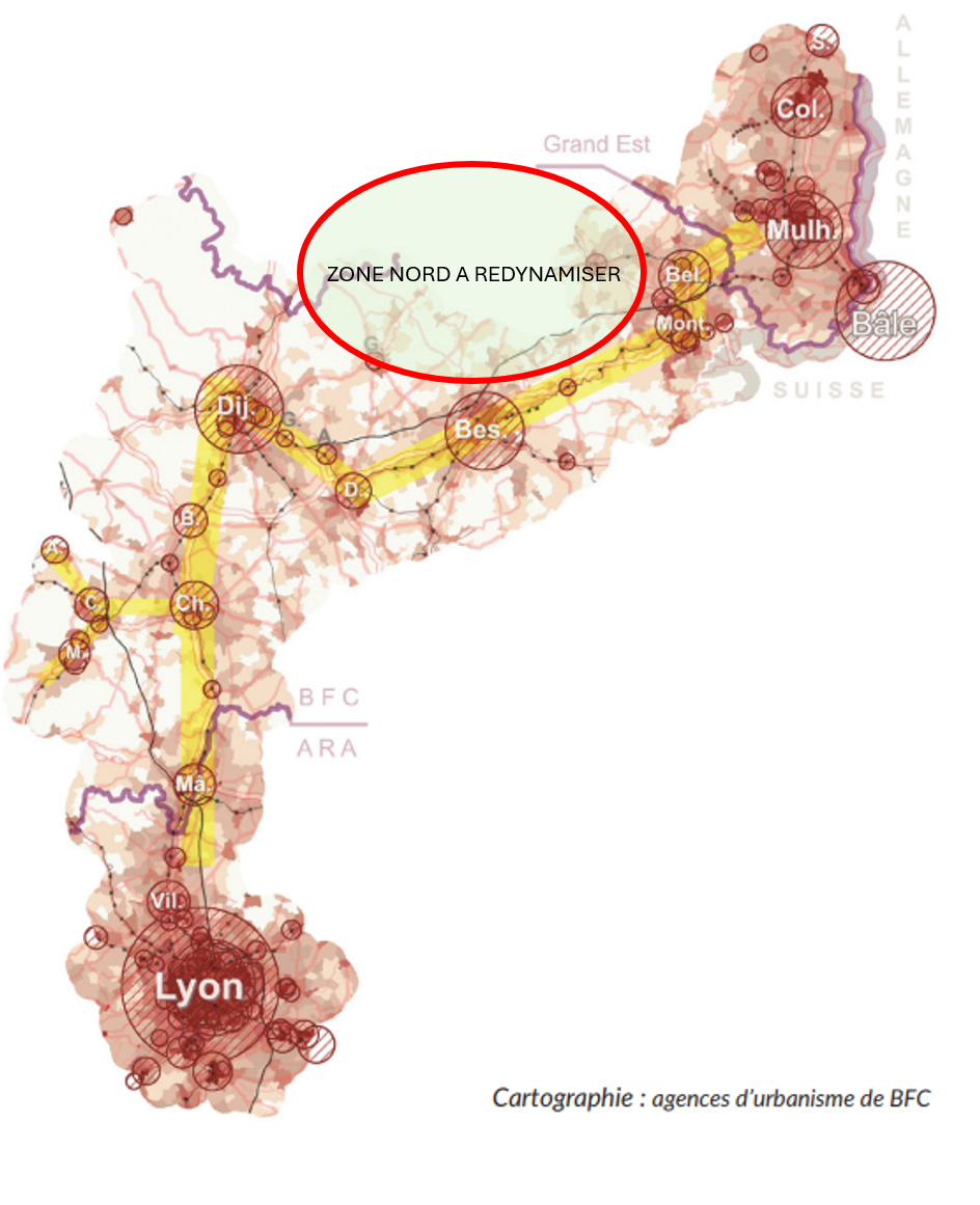 Cet élément fait apparaître la zone nord de l'axe qui demande a être redynamisée.
